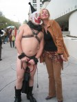 Before I answer that, a caveat. Ouchy the Clown and I aren’t “friends.” I don’t use his services or contribute to how he makes a living. How does he do that? Besides being a DJ and doing “straight razor shaving,” he offers this rather unusual service to clients. Are you ready?