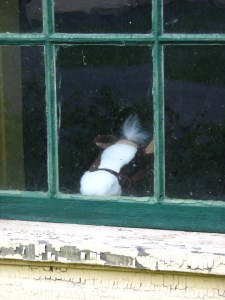 “They used to keep six horses in here,” I said, pointing out the still remaining  harness cabinet that stretched along part of the wall. “Imagine that!”